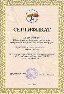 Екі күнге жалғасқан шара соңында көрмеге қатысқан бұқаралық ақпарат құралдары өкілдеріне шеберлік сыныптарынан сәтті өткені туралы сертификаттар табыс етіліп, «MEDIA EXPO-2013» каталогы берілді.
